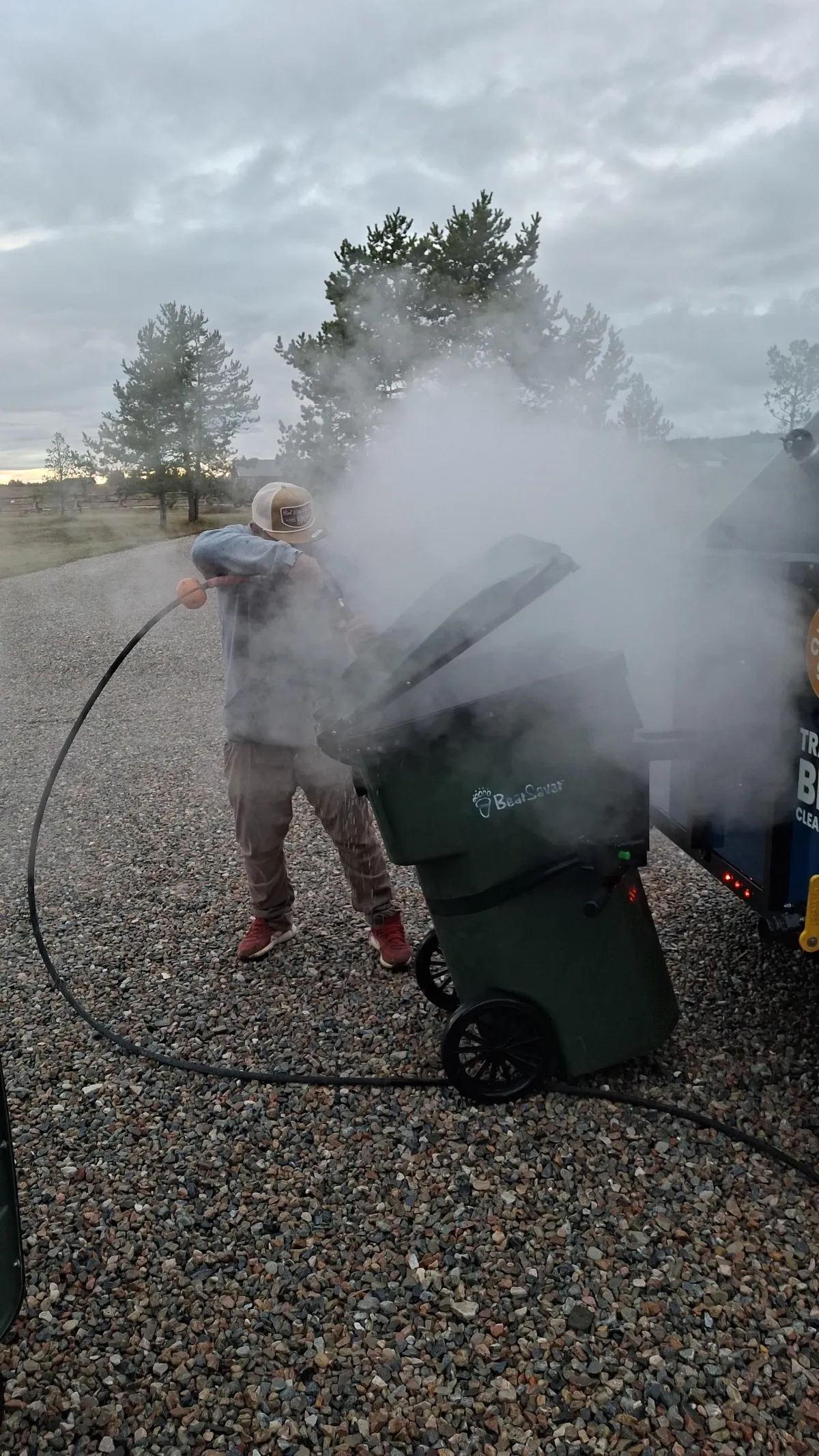 We use a 200 degree high pressure system that kills 99% of bacteria inside of the bin, and then we blast the entire outside of the bin leaving it clean and sanitized, after spraying it with a deodorizer.